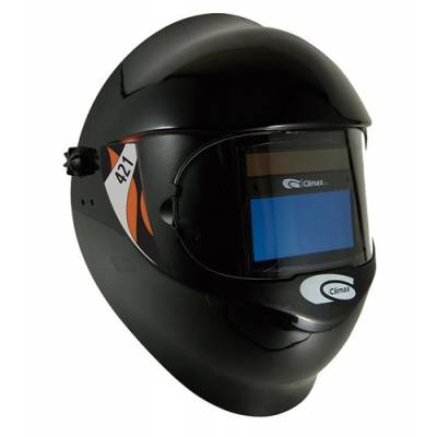 The welding helmet mod. 421 can be used for all types of welding processes as of 5 amperes (MIG/MAG electrodes, TIG/WIG, plasma jet cutting and welding) except por laser and gas welding. It is specially recommended for TIG welding as it is equipped with a special detector for this kind of welding. The fastener system consists of a headgear with two straps (contour strap and cross strap). The circumference of the contour strap can be adjusted comfortably by turning the wing nut at the rear of the contour strap and the length of the cross strap can also be adjusted to seven dierent positions. The contour strap has two cushions that prevent discomfort at the points where the strap touches the wearer´s head. Material: Polyamide Helmet shell size: 325 x 235 mm Harness size: 56-64 CM Shades: Clear 4 and variable 9-13 Power supply: Solar cells and batteries EN 175 CE EN 379 CE