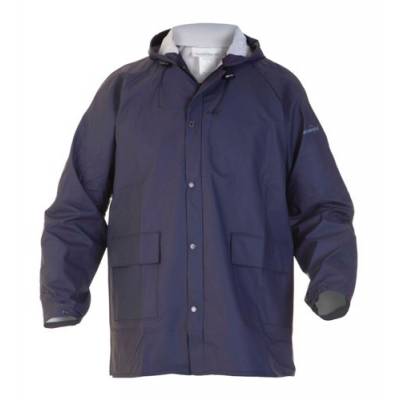 - Zip up front with storm flap and press stud closure, Fixed hood, Underarm ventilation, Elasticated cuffs with press studs, 2 front pockets with flap, 85cm length offering extensive cover, Lightweight and durable, 170 gsm PU coated Polyester fabric, Multi use garment for agriculture, industrial and leisure, Conforms to EN343 Class 3 Water Penetration, Conforms to EN343 Class 1 Breathability