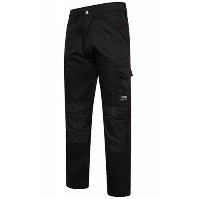 - Essential cargo work trousers with multiple pockets and knee pad pockets with Velcro® fastening. Triple stitched flat felled seams and reinforced back hem for durability. Reflective JCB branding for added security and protection.