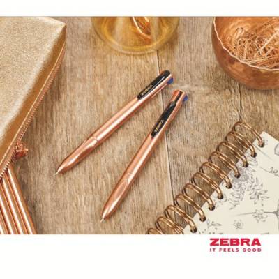 Zebra Rose Gold 4 Colour Ballpoint Pen 1.0mm Tip 0.7mm Line Rose Gold Barrel Black/Blue/Green/Red Ink (Pack 10) - 81460