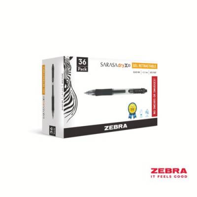 Zebra SARASA Gel Retractable Rollerball 0.7mm Pen Black Ink Pack 36