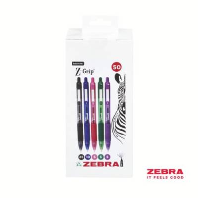 Zebra Z-Grip Smooth Retractable Ballpoint Pen Assorted Ink - Pack of 50