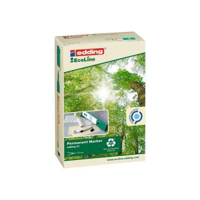 - When it comes to labelling, markings and clear, bold writing, the edding 21 EcoLine permanent marker is the right choice. It can be used to make durable markings on almost any type of surface - from photos, plastic and leather through to wood, stone and metal. An invaluable helper for day-to-day tasks, it belongs in any kitchen, study or workshop. This sustainable permanent marker features a robust, medium round nib and is ideal for organisational tasks as well as artistic creativity. Whether it's labelling preserving jars or hangers for a better-organised home, painting canvas shoes and flower pots in bright colours, or marking surfaces in a home workshop, the edding 21 makes a long-lasting impression. At least 90% of the plastic parts are made from recycled material, of which 83% is sourced from post-consumer plastics (such as used yoghurt pots); refillable in the colours black, red, blue and green with the refill inks edding MTK 25, edding T 25, edding T 100 and edding T 1000. Replacement nibs are available separately. A carbon-neutral product according to ClimatePartner, ID 13742-1910-1001. The permanent marker is filled with vivid, low-odour ink which looks simply amazing and adheres to practically any surface. The cap can be repositioned on the end of the barrel; high quality branded product. Made in Germany.