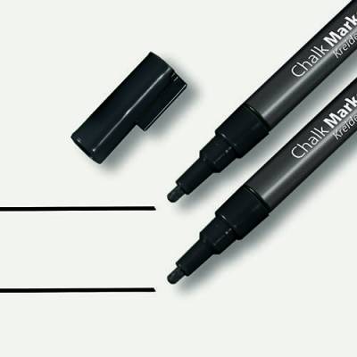 - The black chalk marker with the 1-2 mm rounded tip writes with an opaque liquid chalk and are suitable for use on smooth glass and almost all sealed surfaces. The water-based chalk can be wiped off with a damp or dry cloth.