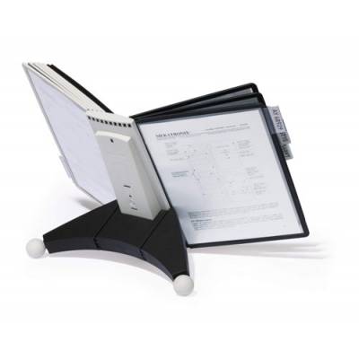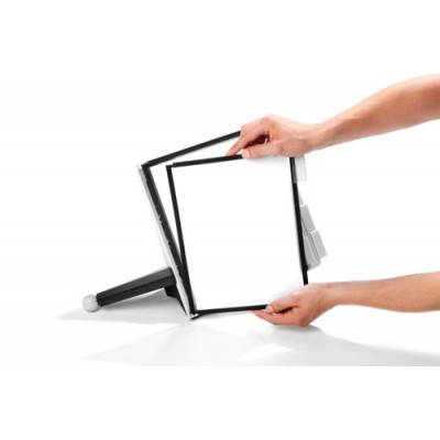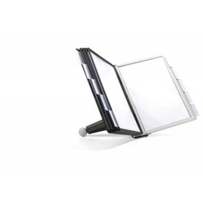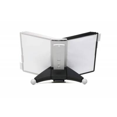 The DURABLE SHERPA® range is a stylish display panel system range with a sturdy base. Perfect for use in a showroom, office, etc. This desk unit includes 10 A4 display panels (5 black and 5 grey) poor holding documents. The panels are anti-glare and copy-proof which makes it easy to use. Great for holding price lists, product information, frequently used telephone numbers, etc.