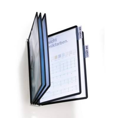 The DURABLE SHERPA® range is a stylish display panel system range with a sturdy base. Perfect for use in a showroom, office, etc. This wall unit includes 5 black A4 double sided panels for holding up to 10 documents. The panels are anti-glare and copy-proof which makes it easy to use. Great for holding price lists, product information, frequently used telephone numbers, etc.