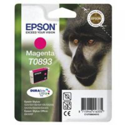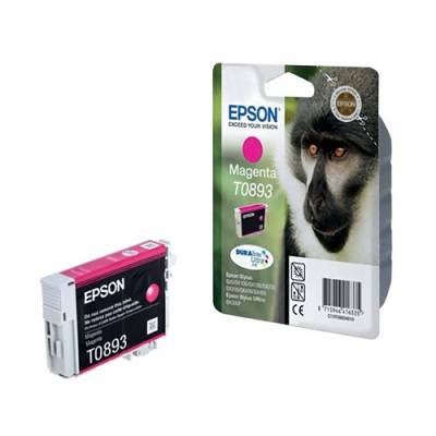 Epson T0893 magenta inkjet cartridge for use in Stylus S20 SX100 SX200 SX205 SX400 and SX405 printers. OEM: C13T08934010.