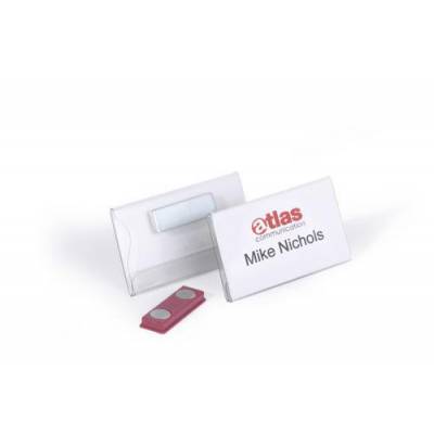 Crystal clear transparent name badges made of premium anti-tear plastics for increased durability. They feature a simple and secure magnetic fastening that will not damage clothes, even delicate fabrics.