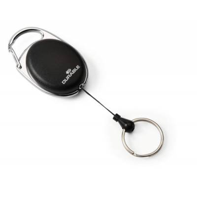 - Stylish German-designed badge reel with keyring compatible with keyrings and punched hole name badges. The reel features a secure metal clip on the reverse for attaching to pockets or belts. Perfect for workplaces with high levels of security.