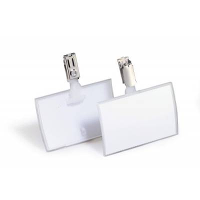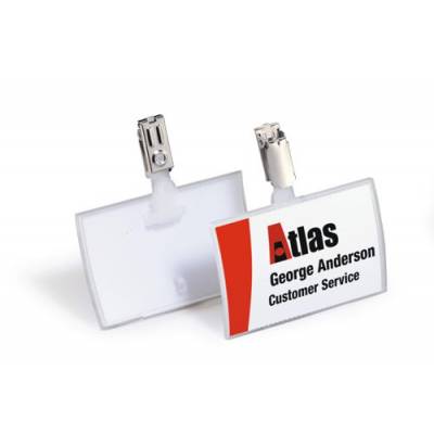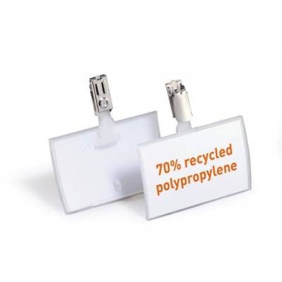 - Modern frameless name badges made with recycled plastic, perfect for use in conferences, trade fairs or seminars. Our unique rotating clip fastener keeps the badge sitting vertically and features a clip cut-out for chains, badge reels and lanyards.