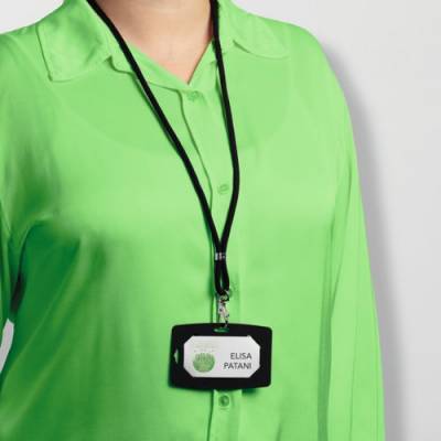 - The Durable rPET Textile Lanyard is a sustainable and practical solution for name badges or ID holders. Made from recycled bottles this eco-friendly lanyard features a soft woven design and includes a metal carabiner for easy attachment.