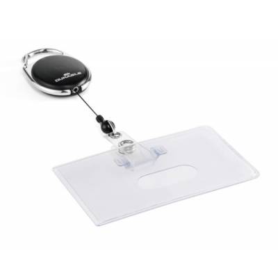 - Stylish German-designed ID card holder with secure smooth operating badge reel. The reel features a secure integrated carabiner for attaching to belt loops, perfect for workplaces with high levels of security.
