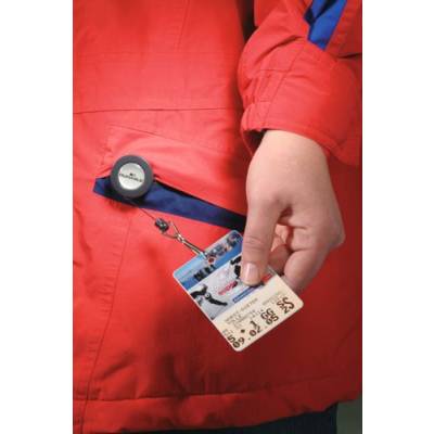 Modern German-designed badge reel with snap hook fastener compatible with all punched hole Durable name badges. The reel features a secure clip on the reverse for attaching to pockets or belts. Perfect for workplaces with high levels of security.