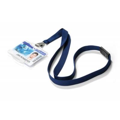 - Our German-designed premium lanyards are made of silky-soft textile quality fabric and include a built-in safety release protecting the user if the strap becomes caught or trapped. The easy clip attachment can be used with all pin and punched Durable name badges.