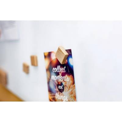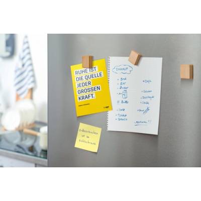 The stylish magnets from the SIGEL range are ideal for the office, home office and home, as they hold securely to whiteboards, magnetic glass boards and metal surfaces. The magnets made of solid wood pine, neodymium (3,3 x 3,3 cm, square, beige), set of 4, hold up to 20 sheets (A4, 80 gsm) on whiteboards and up to 14 sheets (A4, 80 gsm) on magnetic glass boards.