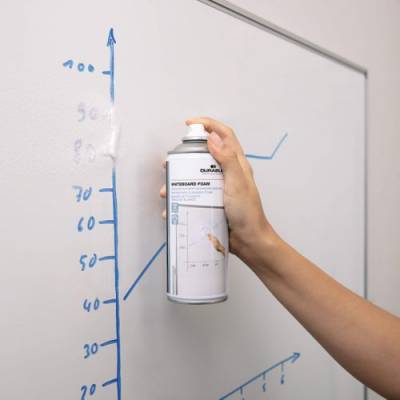 Durable’s non-running whiteboard foam is ideal for cleaning and renovating whiteboards. It removes grease, dirt and ghosting stains left by dry erase marker pens.