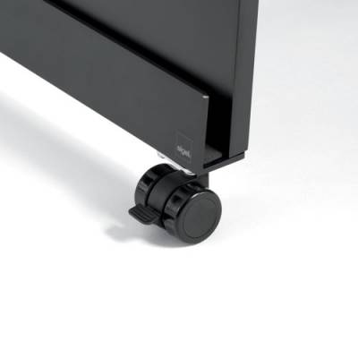 The Meet up product range makes project work and teamwork more transparent, flexible and efficient. This portable stand is ideal for working with the agile whiteboards and pinboards from the SIGEL range. The stand is flexible to use, either with one board inserted into the central slot or with two boards in tent use. It is the convenient solution for spontaneous, uncomplicated meetings or workshops, even when there is no fixed meeting room available ” and is particularly versatile when it comes to agile, creative working methods, e.g. Brainstorming, Scrum, Kanban or Design Thinking. The stand also serves as a handy shelf for accessories. Its lockable casters are ideal for hard floors. Larger castors for soft floors are available to purchase separately (4 pcs.; MU051). In addition to this, up to three stands can be stacked on top of each other. It is made of black lacquered MDF, with an aluminium profile on each side that hold the multipurpose boards securely in place. The product dimensions are 90x180 cm. To work with the Meet up pinboard, you can insert a single board or two boards into the stand (accessories) or place it in the wall track (accessories, MU060). There is a wide range of indispensable accessories and consumables to go with the Meet up pinboard, which complete the Meet up board system and facilitate the use of agile, creative working methods. The products include presentation cards, static notes, marker pens, pins, swimlanes and much more besides (available to purchase separately or as a set in a fully equipped toolbox). Includes two handles. Meet up is the complete board system for agile, creative working. Ideas to go. Anywhere. Anytime.