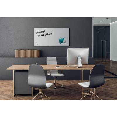 - The multifunctional Artverum glass whiteboard is the ideal support for meetings and agile project work, creative brainstorming sessions and for modern work techniques. Thanks to the matt surface, there is minimal glare or reflection when photographing the magnetic glass board in the 91 x 46 cm format in super-white. This magnetic board from the international award-winning Artverum range is simply mount in portrait or landscape format with the enclosed mounting materials and can be combined with other boards with the same wall clearance of 10 mm.