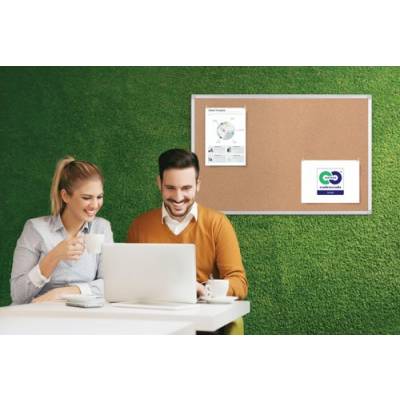 - This Silver C2C certified professional and ecological cork notice board is the perfect natural solution for posting messages at the office. The cork surface is self-healing and can be used with any type of pushpins.
